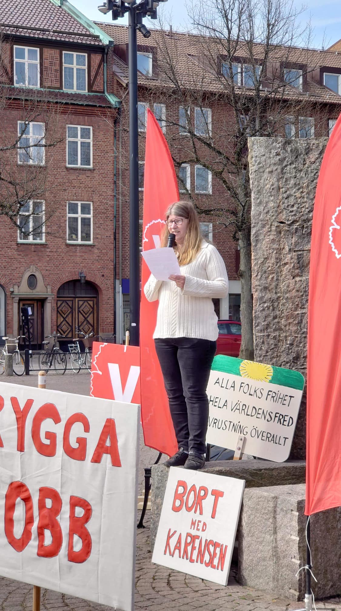 Susanne håller 1:a maj tal på Stortorget i Ängelholm