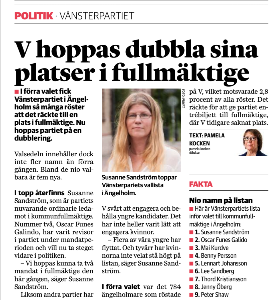 Vänsterpartiet i Ängelholm har hållit årsmöte och valt Oscar Funes Galindo till ordförande för 2023.