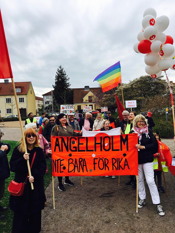 För första gången på 33 år demonstrerade Vänsterpartiet i Ängelholm på 1:a maj.