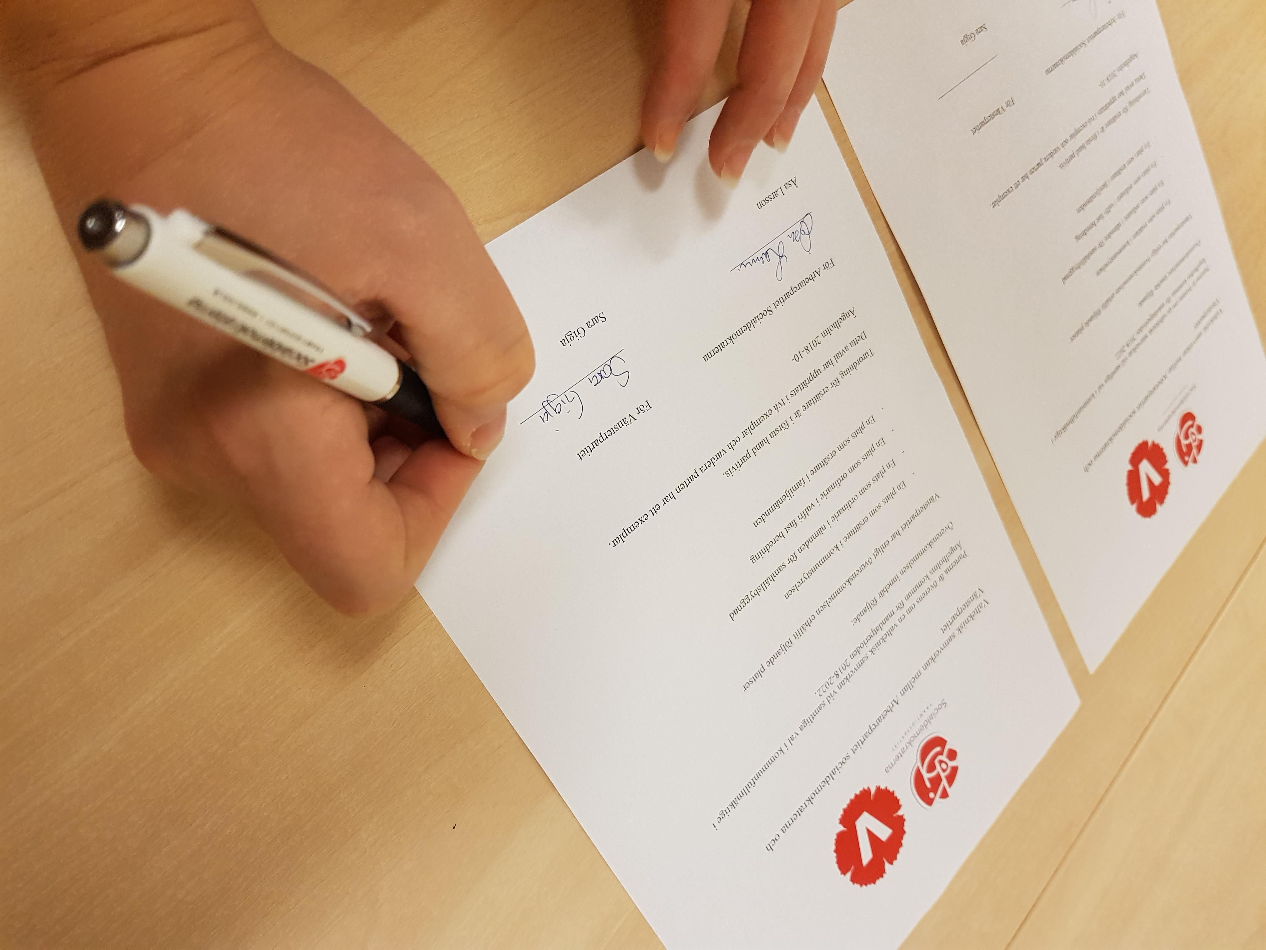 Vänsterpartiet och socialdemokraterna i Ängelholm skakar hand över valtekniskt samarbete. Vänsterpartiet har tack vare detta samarbete fler platser i nämnder och beredningar vilket innebär större insyn i det politiska arbetet – och större möjligheter att påverka. En stark röd opposition innebär att varje beslut som alliansen klubbar kommer att synas. Vi kommer lyfta rättviseperspektiv närhelst vi får möjlighet, och verka för ett Ängelholm för alla – inte bara de rika. På bilden syns Kommunfullmäktigerepresentant Susanne Sandström, ordförande för Vänsterpartiet, Sara Gigja samt ordförande för Socialdemokraterna, Åsa Larsson och andre vice ordförande Lars Nyander.